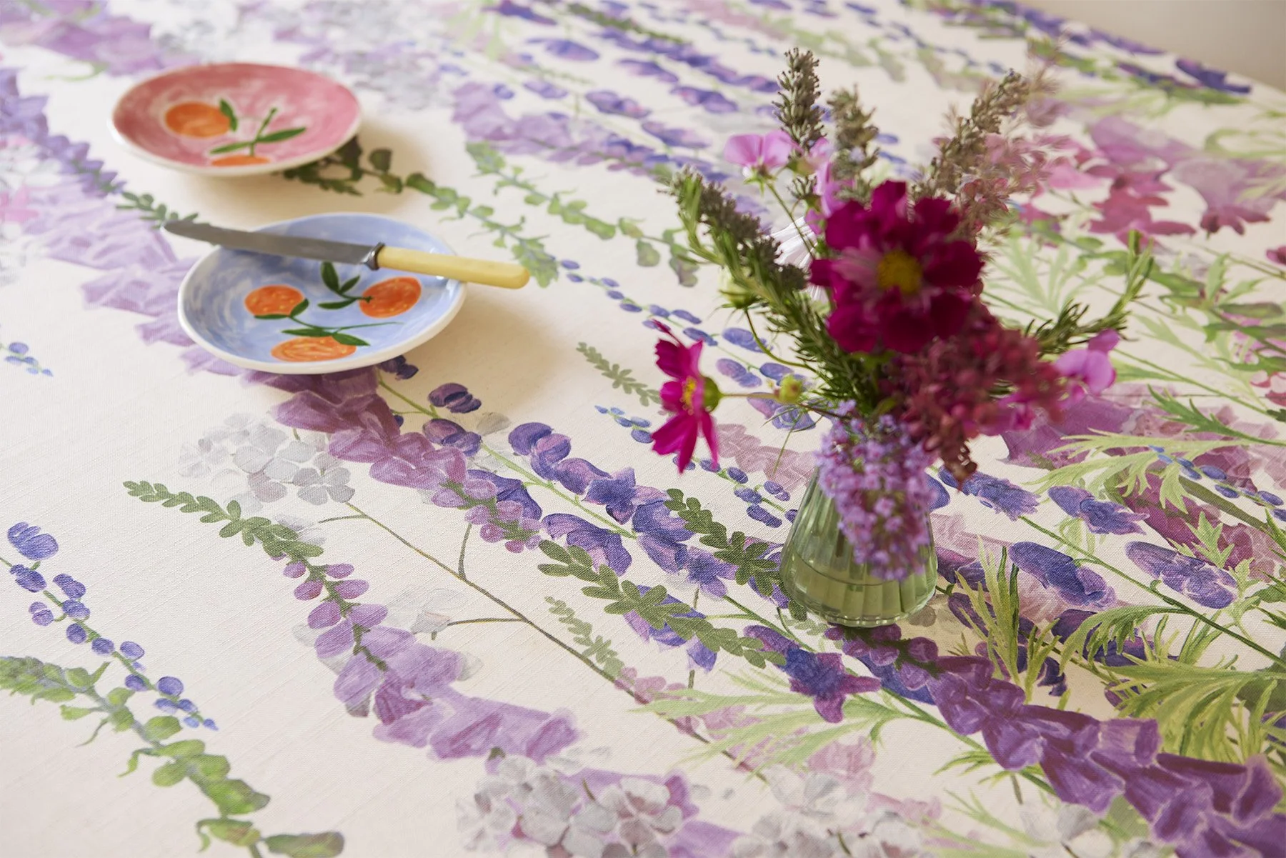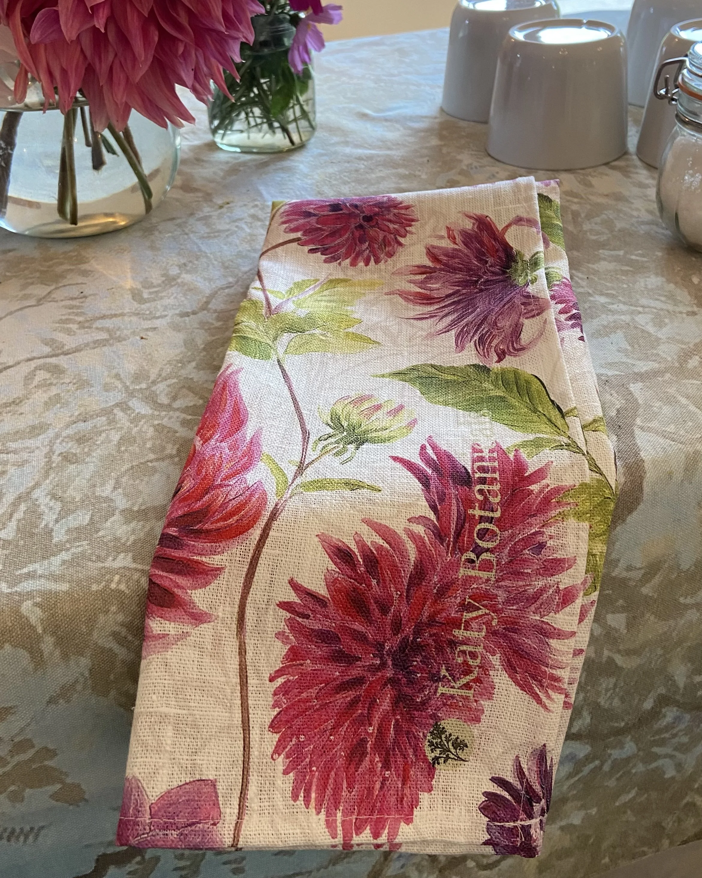 In 2025 Horatio’s Garden commissioned Katy to design the backdrop for our RHS Chelsea Flower Show trade stand created by acclaimed landscape designer Bunny Guinness. Horatio’s Garden immediately thought of Katy as her style fits so beautifully with Bunny’s vision. Katy is thrilled to now be able to reproduce the Chelsea stand design in two versions to be used as a table cloth, curtains, wall hanging, cushion covers or whatever else your imagination dreams up. With 25% of the purchase price going to Horatio’s Garden this is a partnership made in floral heaven.