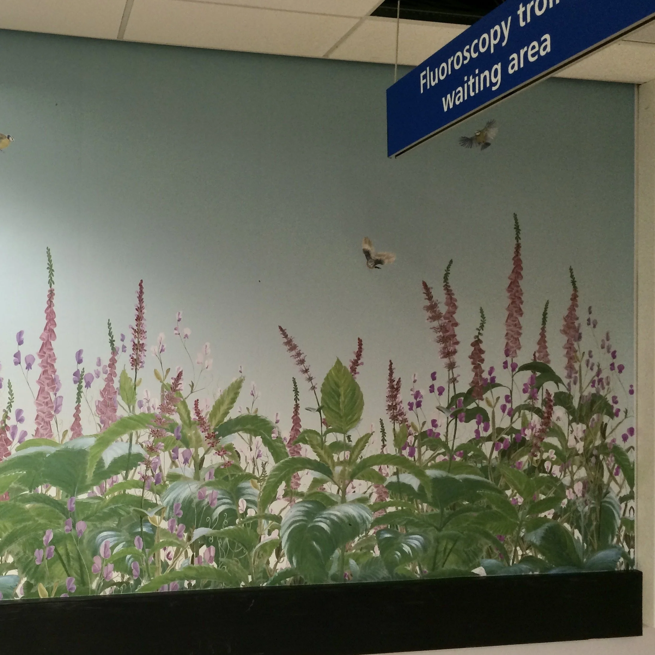 A few years ago I was lucky enough to introduce some botanical wall designs into Southampton ICU and onto the walls of a new PET Scan unit in Bath, and have since created wall designs for homes and care facilities.