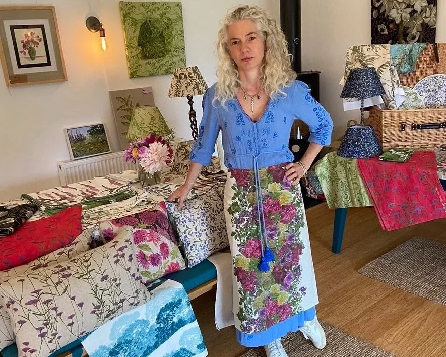 At Katy Botanicals, for the last ten years I’ve been creating hand‑painted botanical fabrics while looking out over my English cottage garden in the Hampshire countryside. Every design begins as an original painting, developed from plants, flowers, and natural forms I find in my garden and on walks through the countryside from my home. This hands‑on process ensures each pattern has a clear artistic origin and a direct connection to the landscape that inspires it.