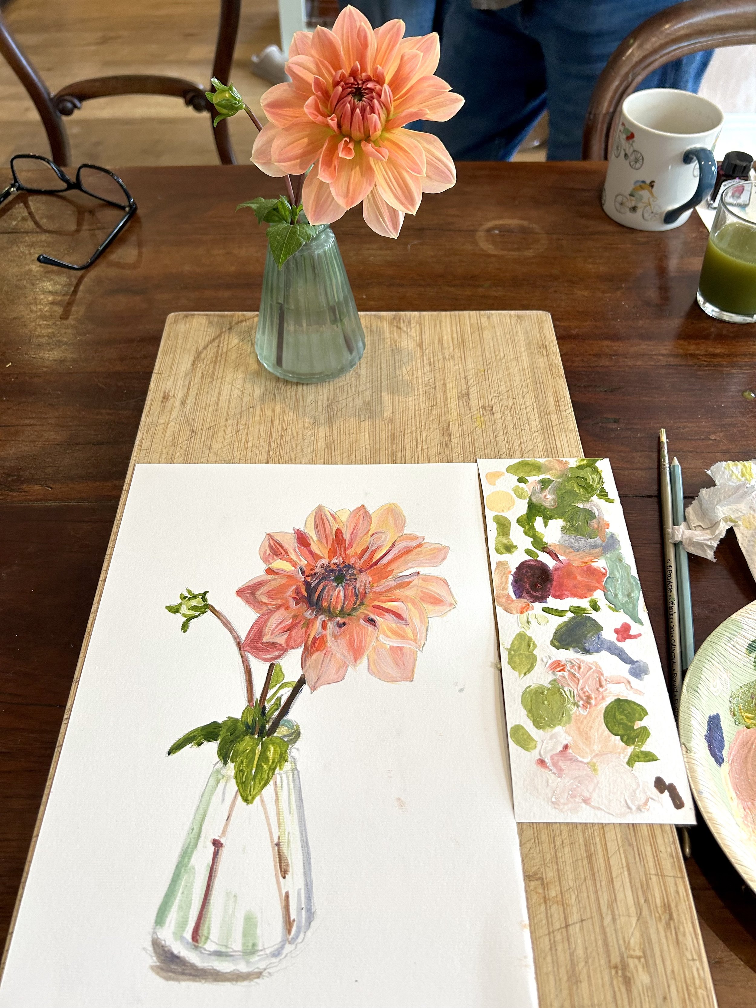 Painting sketch of dahlia showing test paper