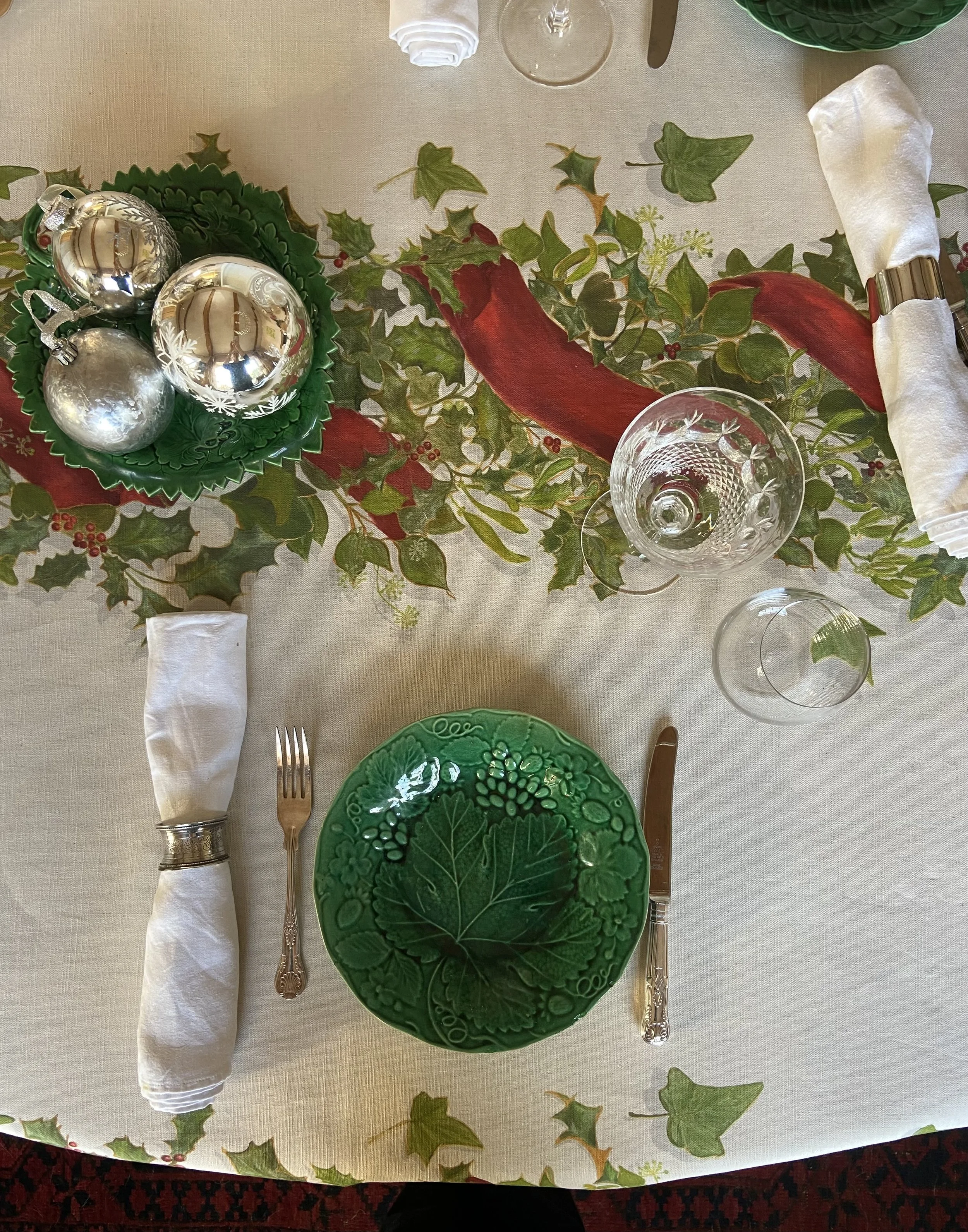 Painted as a decorative centrepiece to run down the middle of your dining table, these sprigs of roses and euphorbia have been hand painted in oils on parchment, then printed onto organically linen.